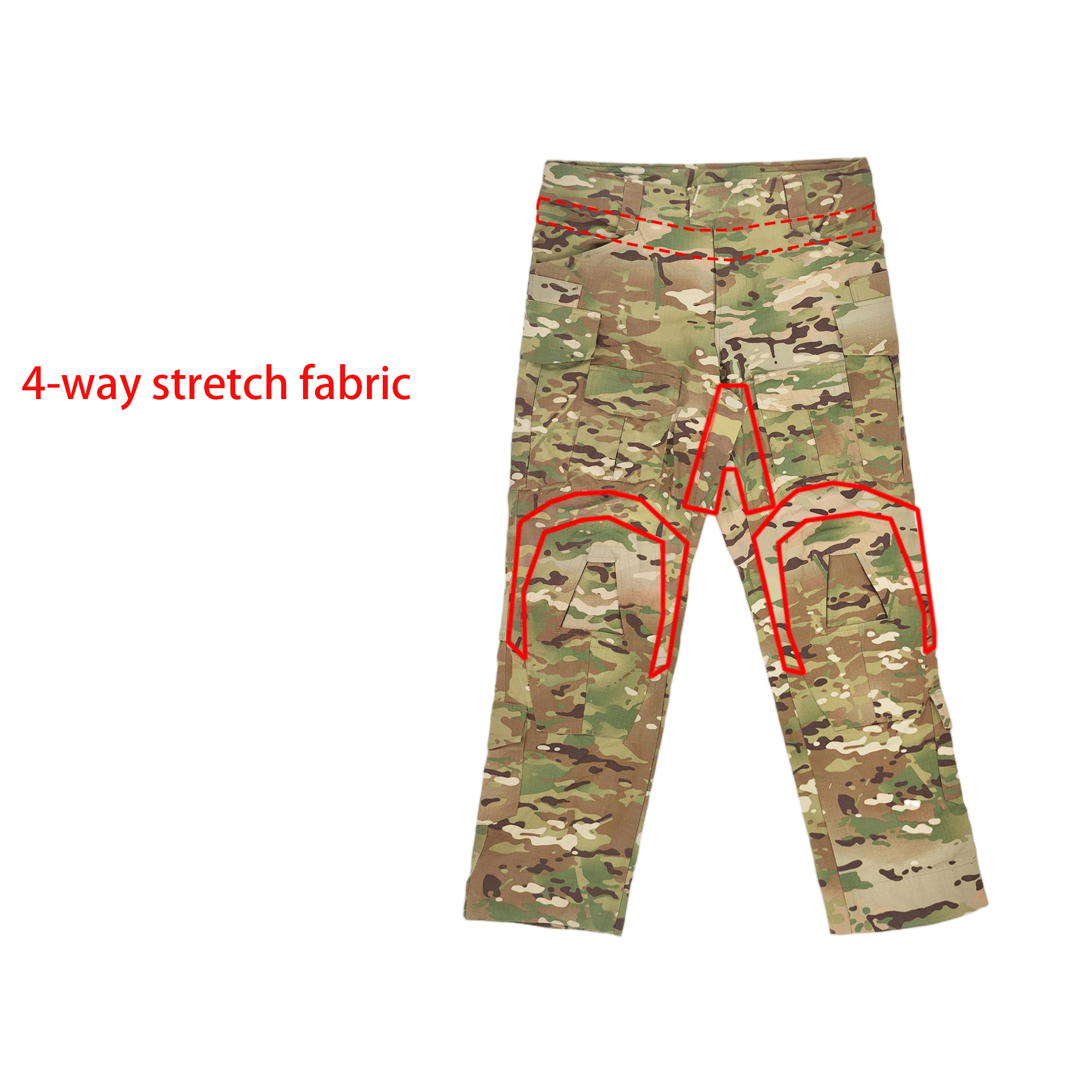- Material:Mil-Spec 50/50 NYCO,4-way stretch fabric at the knee and lower back aera